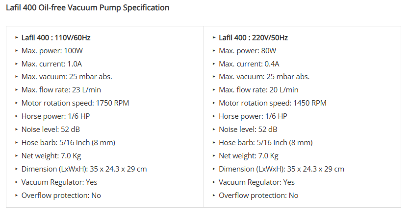 Lafil 300(OIL FREE VACUUM PUMP)Max. vacuum:25 mbar abs./Max. flow rate:23 L/min.